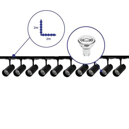 | Manufacturer Name | Complete L shaped 1-Phase Track Set Black incl. 10x Spot fixture + GU10 2700K 3W Dim – 2 x 2 meter | |