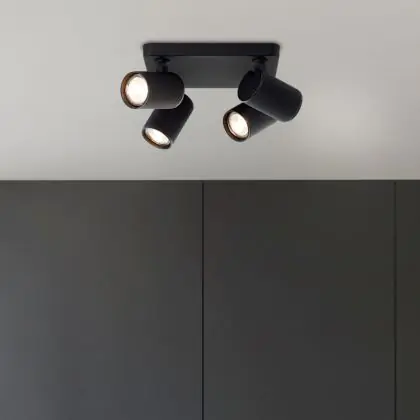 Brilliant Marty Ceiling Light Aluminium Sandy Black 20W 1400lm - 830 Warm White | Incl. 4x GU10