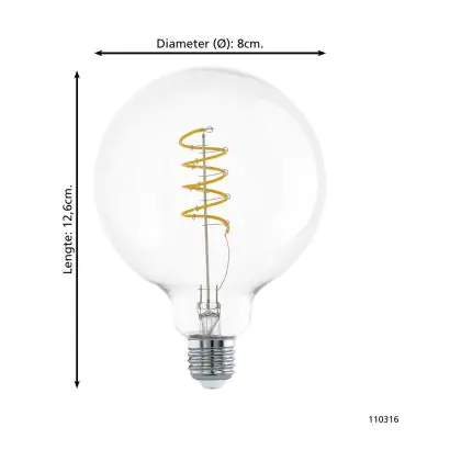 Eglo LED E27 Globe Clear Filament 7.3W 806lm - 827 Extra Warm White | Replaces 60W