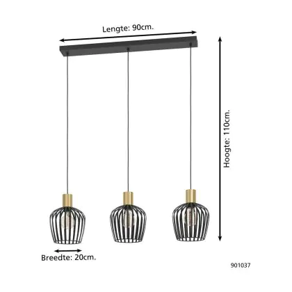 Eglo Pendant Empoli Steel Black | IP20 - Suitable for 3x E27