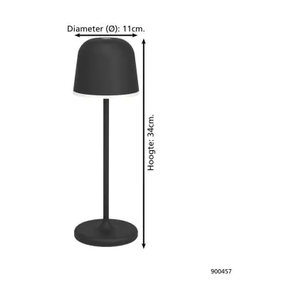 Eglo Table Lamp Mannera Aluminium Black 2W 200lm - 830 Warm White | IP54 - Touch Dimmable - USB-C