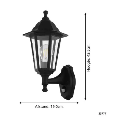 Eglo Wall Light Duanera Black | IP44 - Suitable for 1x E27 - Motion Sensor
