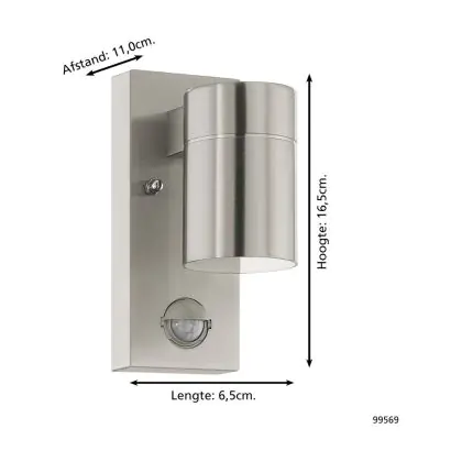 Eglo Wall Light Riga 5 Stainless Steel 2W 250lm - 830 Warm White | IP44 - Motion Sensor