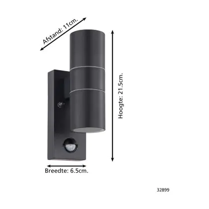 Eglo Wall Light Riga 5 Steel Anthracite 2W 250lm - 830 Warm White | IP44 - Motion Sensor