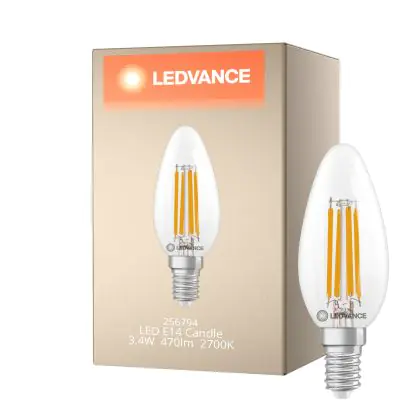 Ledvance Classic LED E14 Candle Filament Clear 3.4W 470lm - 827 Extra Warm White | Dimmable - Replaces 40W