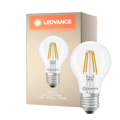 Ledvance Classic LED E27 Pear Filament Clear 3.4W 470lm - 827 Extra Warm White | Replaces 40W