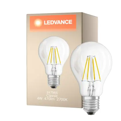Ledvance Classic LED E27 Pear Filament Clear 4W 470lm - 827 Extra Warm White | Replaces 40W