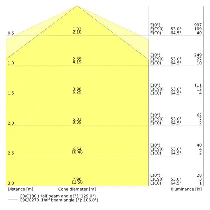 ![]() The colour code is a combination of colour rendering (CRI) and light colour (Kelvin). The first number indicates the colour rendering (1 = very poor colour rendering, 9 = maximum colour fastness). The second and third number contains the light colour. Example: the colour code 830 consists of good colour rendering (8) and warm white light (3000K). |