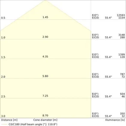 ![]() The colour code is a combination of colour rendering (CRI) and light colour (Kelvin). The first number indicates the colour rendering (1 = very poor colour rendering, 9 = maximum colour fastness). The second and third number contains the light colour. Example: the colour code 830 consists of good colour rendering (8) and warm white light (3000K). |