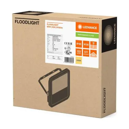 Ledvance LED Floodlight Aluminium Black 69W 9150lm 100D - 830 Warm White | IP66 - Symmetrical