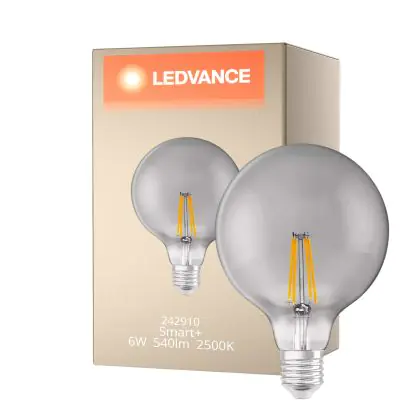 Ledvance Smart+ Wifi E27 Globe Classic Filament Smoky 6W 540lm - 825 Extra Warm White | Dimmable - Replaces 50W