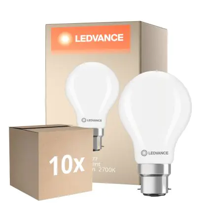 Multipack 10x Ledvance Classic LED B22 Pear Frosted 5.9W 806lm - 827 Extra Warm White | Replaces 60W