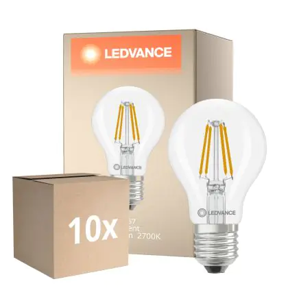 Multipack 10x Ledvance Classic LED E27 Pear Filament Clear 3.4W 470lm - 827 Extra Warm White | Replaces 40W