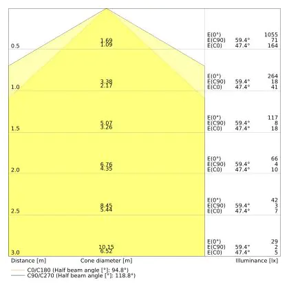 ![]() The colour code is a combination of colour rendering (CRI) and light colour (Kelvin). The first number indicates the colour rendering (1 = very poor colour rendering, 9 = maximum colour fastness). The second and third number contains the light colour. Example: the colour code 830 consists of good colour rendering (8) and warm white light (3000K). |