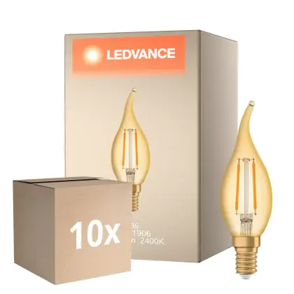 Multipack 10x Ledvance Vintage 1906 LED E14 Candle Gold 2.5W 220lm - 824 Extra Warm White | Replaces 22W