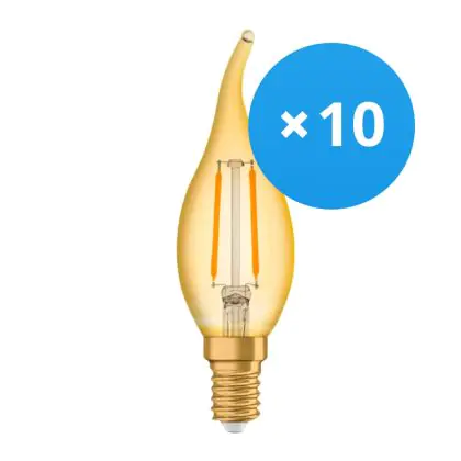 Multipack 10x Osram Vintage 1906 LED E14 Candle Gold 1.5W 120lm - 824 Extra Warm White | Replaces 15W