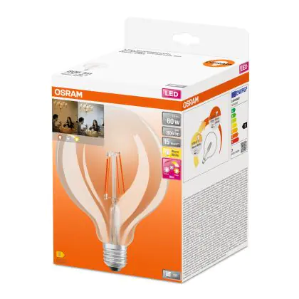 Multipack 4x Osram SuperStar LED E27 Globe 125mm Filament Clear 7W 806lm - 822-827 Dim To Warm | Dimmable - Replaces 60W