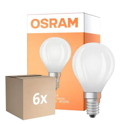 Multipack 6x Osram Classic LED E14 Ball Filament Frosted 5.5W 806lm - 840 Cool White | Dimmable - Replaces 60W