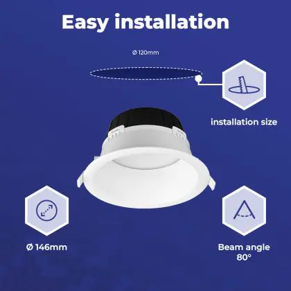 | Manufacturer Name | Noxion LED Downlight Hera Deep Recessed White 9W 900lm 80D - 827-830-840 CCT | 146mm - Cutout 120mm | |
