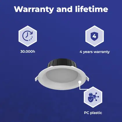 The lifespan is an indication of the number of hours a product will last. This refers only to the hours the product is actually on. LED lighting has a significantly longer lifespan than conventional lighting. LED lighting therefore lasts much longer. How long you can actually use a product depends on the extent of its (daily) use. |