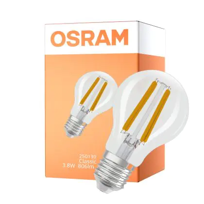 Osram Classic LED E27 Pear Filament Clear 3.8W 806lm Ultra Efficiency - 840 Cool White | Replaces 60W