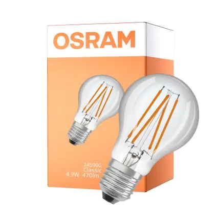 Osram Led Star Classic LED E27 Pear Filament Clear 4.9W 470lm - 827 Extra Warm White | Light Sensor
