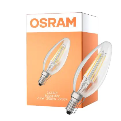 Osram LED Superstar Classic E14 Candle Filament Clear 2.2W 300lm - 927 Extra Warm White | Dimmable - Replaces 25W