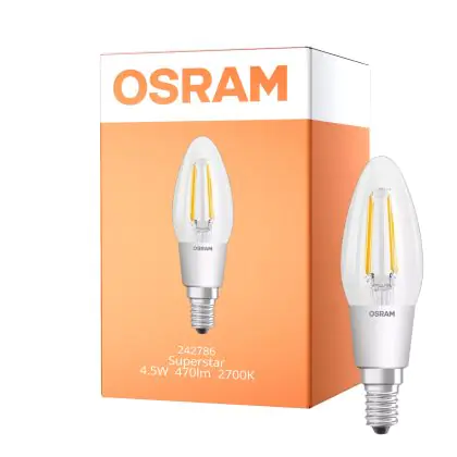 Osram Superstar Classic LED E14 Candle Filament Clear 4W 470lm - 822-827 Dim To Warm | Dimmable - Replaces 40W