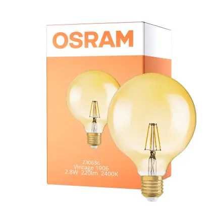 Osram Vintage 1906 LED E27 Globe Filament Gold 125mm 2.8W 200lm - 824 Extra Warm White | Replaces 25W