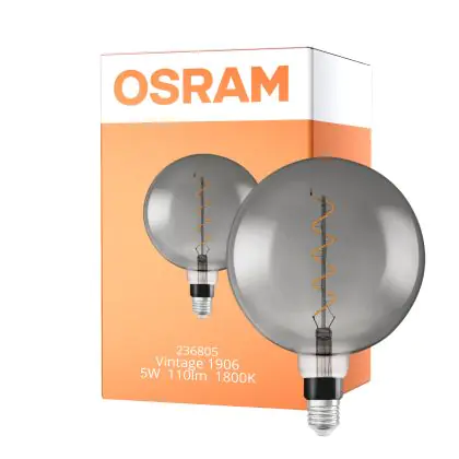Osram Vintage 1906 LED E27 Globe Filament Smoke 200mm 5W 110lm - 818 Extra Warm White | Replaces 25W