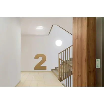 ![]() Lighting with a built-in emergency lighting unit (battery) continues to burn for a certain time if the power fails. |