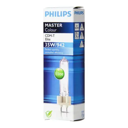 CDM-T Elite is a compact high pressure ceramic iodide discharge lamp with high luminous efficacy. These lamps are not dimmable. If you want a lamp with adjustable intensity, choose the Philips CDM-T Elite Light Boost! Philips CDM-T Elite 35W 942 G12 have a G12 base type, which allows them to fit perfectly in your old fixtures. The average lifespan of Philips CDM-T Elite 35W 942 G12 is 15000 hours, which corresponds to approximately 4 years of use.