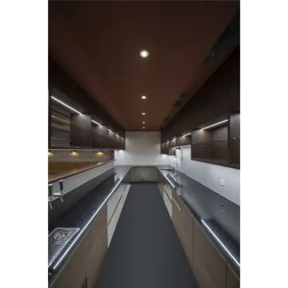 A fixture with a tiltable design makes it possible to direct the lighting specifically at an object or surface. This can play a particularly important role in shops (putting a new collection in the spotlight) or galleries (accentuating works of art). It can also influence the purchasing behaviour or interpretation of visitors.